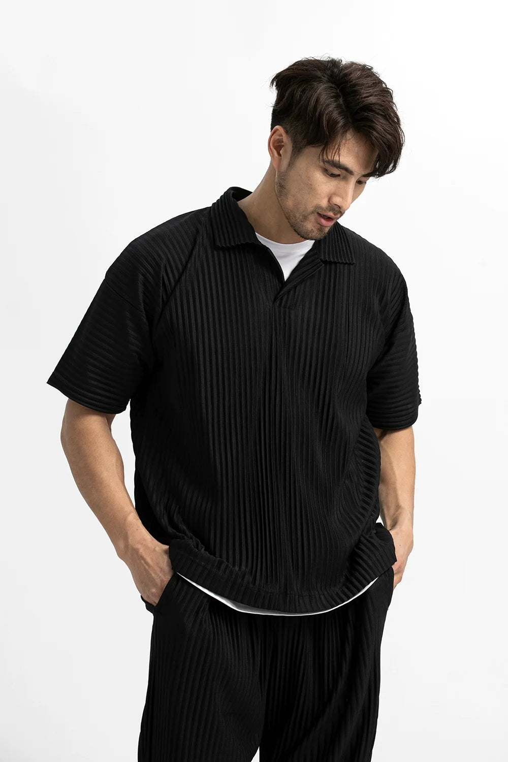 Introducing our Pleated Polo Shirt, a versatile addition to any wardrobe. Crafted from high-quality polyester, this shirt offers comfort and style in equal measure. Perfect for casual outings and shopping, it features short sleeves and a turn-down collar for a relaxed yet smart look. This shirt is ideal for the Spring and Summer seasons, offering a cool and breathable feel. Available in sizes S to XXL, and colors Light Gray and Black, it caters to every preference. Embrace effortless style and comfort with our Casual Pleated Short Sleeve Polo, designed to elevate your everyday attire.