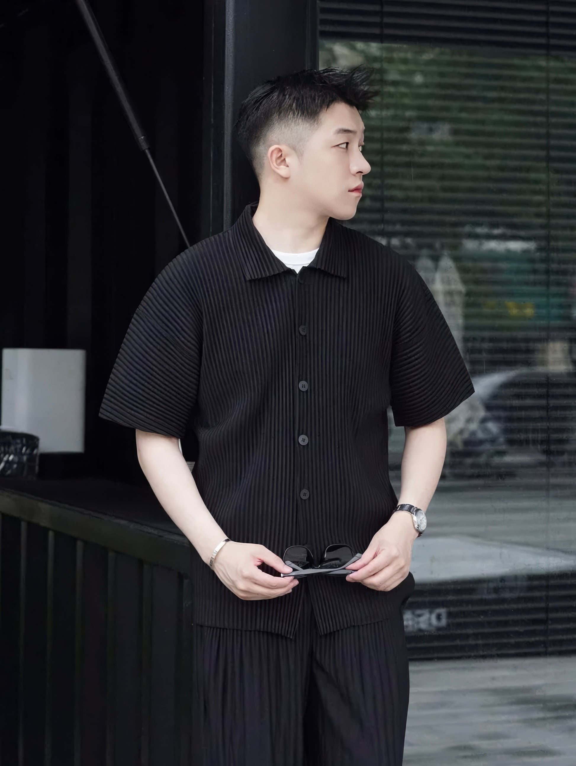 Introducing our Pleated Short Sleeve Shirt, a versatile addition to any wardrobe. Crafted from high-quality polyester, this shirt offers comfort and style in equal measure. Perfect for casual outings and shopping, it features short sleeves and a turn-down collar for a relaxed yet smart look. This shirt is ideal for the Spring and Summer seasons, offering a cool and breathable feel. Available in sizes S to XXL, and colors Light Gray and Black, it caters to every preference. Embrace effortless style and comfort with our Casual Pleated Short Sleeve Shirt, designed to elevate your everyday attire.
